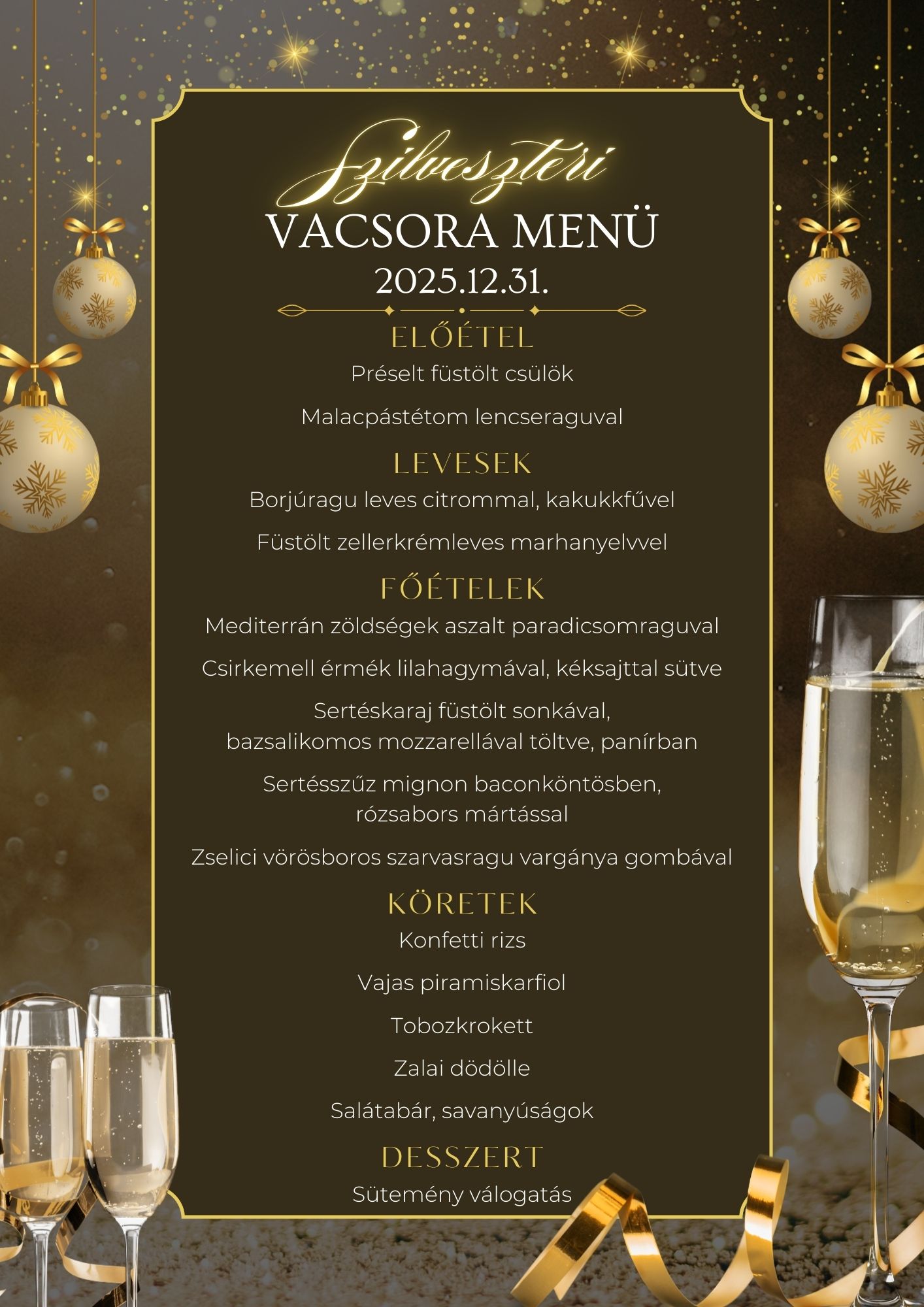 Január 1-én újévi büféreggeli (az étterem hosszított nyitvatartással működik)
